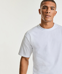 2.3cm knit collar. Shoulder to shoulder taping. Fine gauge knit. Front coverseaming on collar. Tubular construction for shape retention.