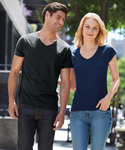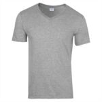 Deluxe 30’s soft style yarns. Non-topstitched ½” rib knit collar. Taped neck and shoulders. Mitred V-neck pattern. Side seam construction with stylish tapered fit. Twin needle sleeve and bottom hems. Quarter-turned to eliminate centre crease.