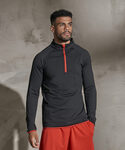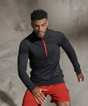AWDis' own CoolFit blended fabric containing elastane that provides stretch for comfort and a great fit, tight fit, reflective tab on back of neck helps keep ear phone cords in place, self-fabric contrast colour binding at zip, cuffs and hem, raglan sleeve design creates ease of movement, ½ zip with stand-up collar for warmth, chin guard prevents irritation, simple tear off label makes it perfect for rebranding, UPF 30+ UV protection. Vegan certified. BSCI certified.