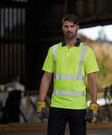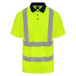 Conforms to EN ISO 20471: 2013 + A1: 2016 class 2. RIS-3279-TOM (orange/navy only). Lightweight breathable birdseye fabric. Contrast ribbed collar. Contrast three button placket. Two reflective bands on front back and one over each shoulder.