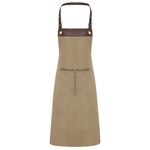 Easy care fabric. Faux leather trim and neck tie. Neck tie with adjustable stud fastening. Large metal eyelets. Two pleat pockets. Width 72cm.