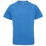 Wicking fabric. Crew neck. Short raglan sleeves. Mesh panels on reverse and under arms. Shoulder seams.