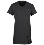 Beauty and Spa tunic with cross over neckline and asymmetric zip front. Short sleeve with vented cuff. Side vents. Princess seams with top-stitch detail for flattering fit. Easycare. Size 8, 10, 12, 14,16, 18, 20, 22, 24