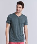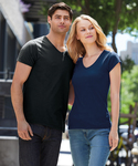 Deluxe 30’s Soft style yarns. Non topstitched ¾” rib knit collar. Taped neck and shoulders. Mitred V-neck pattern. Euro style fit in neck/shoulders/sleeves. Twin needle sleeve and bottom hems. Quarter-turned to eliminate centre crease.