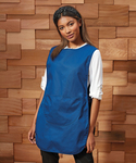Side tabs with adjustable, stud-fastened closures. Colour-matched bias trim edges, large patch pocket, crease resistant finish. Industrial laundry 85°C, domestic wash 60°C.