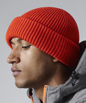 Contains at least 50% recycled polyester. Equivalent to approx. 1.5 post-consumer bottles. Ribbed knit. Engineered crown for maximum comfort. Cotton Jersey lining for comfort and breathability. Wide cuffed design for optimal decoration.