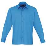 - A men’s long sleeved classic fit Poplin shirt available in 30 colours from the Premier 'Colours Collection.' This classic work shirt has a stiffened formal cut collar which accommodates a ties perfectly. The left breast pocket and self-fabric buttons down the placket and cuffs makes for a smart and stylish everyday shirt which carries Premier's easy care label.