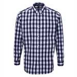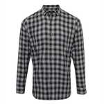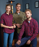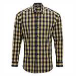 Long sleeve semi-fitted shirt for men with a multi-coloured contrast check pattern. Single button cuff and sleeve guard which is designed to be rolled up and secured in place with a button and tab on the upper arm. Soft collar styling with curved hem. Washing Instructions Domestic wash at 40°c.
