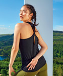 Wicking fabric. Scoop neck. Adjustable Knot detailing to back. Flattering cut for the female figure.